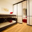 La zona notte e' composta da 1 camera con letto matrimoniale separata da pareti mobili , 1 zona con divano letto trasformabile anche in letto a castello .La zona giorno e' composta da